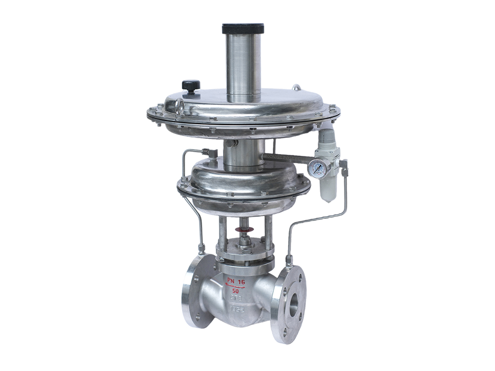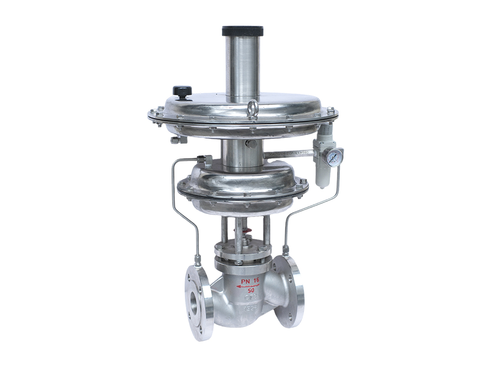 ZZYP-16 II 型带指挥器操作式自力式压力调节阀(简称氮封阀)无需外加能源,利用被调介质自身能量为动力源,引入压力阀的指挥器以控制压力阀的阀芯位置,改变流经阀门的介质流量,使阀门后端压力(B型)或前端压力(K型)保持恒定。ZZYP-16BII主要用在阀前压力较高(0.1-0.8MPa)而阀后力很低(0.5-100KPa),例如50mmH20(水柱)的场合,ZZYP-16KH只用在泄氮装置上,并且与供氮装置配套使用。单独使用时请用ZZVP阀代替。